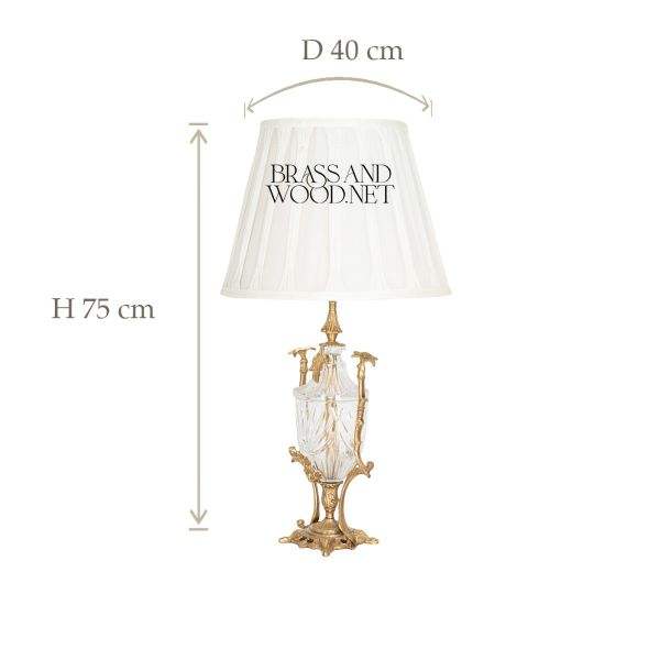 โคมไฟคริสตัลโบราณและทองเหลืองพร้อมฐานตกแต่งที่หรูหรารายละเอียดศิลปะสีทองเฉดสีผ้าที่หรูหรา