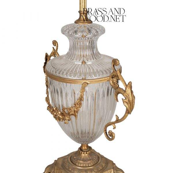 โคมไฟคริสตัลโบราณและทองเหลืองพร้อมด้ามจับสีทองหรูหราโป๊ะผ้าหรูหราและฐานตกแต่งแบบคลาสสิกสำหรับบ้านสุดหรู