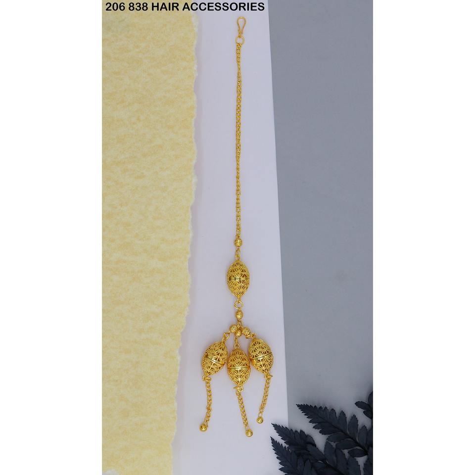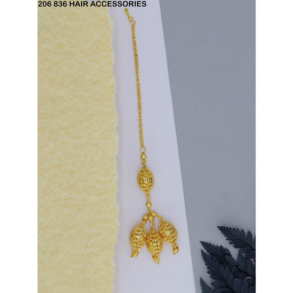 เครื่องประดับผมงานแฮนด์เมดสไตล์ดั้งเดิมจาก Maang Tikka ชุบทองสำหรับผู้หญิงและงานแต่งงานและเจ้าสาว