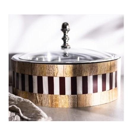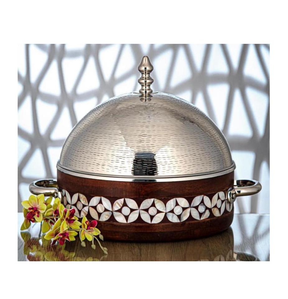 หม้อร้อนเสิร์ฟอาหารดีไซน์โบราณทำจากไม้และสเตนเลสสตีลดีไซน์ใหม่ล่าสุดพร้อมฝาปิด