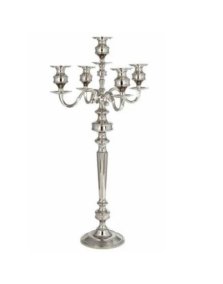 เชิงเทียนโลหะแบบนูน5แขนสไตล์โบราณเชิงเทียนสีเงินเชิงเทียนสำหรับงานเลี้ยงเชิงเทียนเชิงเทียนโลหะ2023