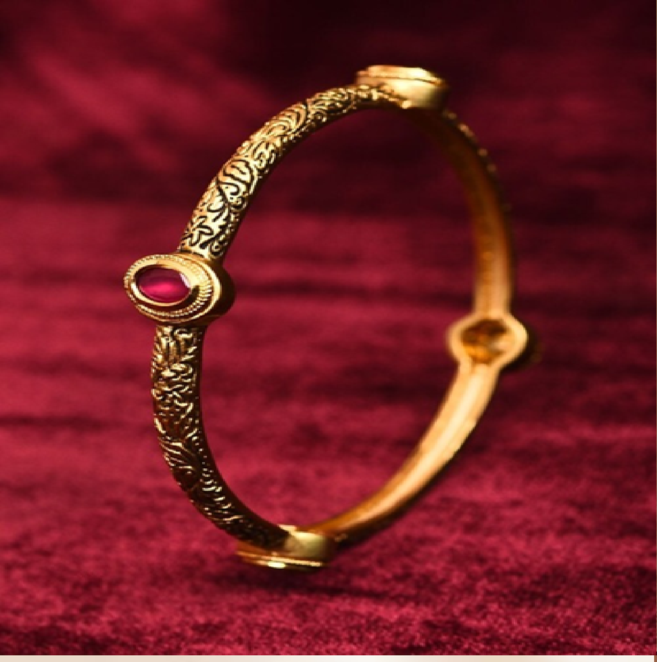 กำไลทองเหลืองสไตล์โบราณที่มีดีไซน์โดดเด่นและการตกแต่งด้วยหินสีแดงทรงสี่เหลี่ยมขนาดเล็กในราคาขายส่ง