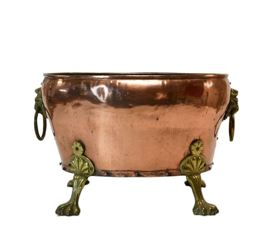 ถังน้ำแข็งทองแดงทำด้วยมือโบราณสำหรับบาร์หรูหราจัดแสดงบนเคาน์เตอร์ที่มีการออกแบบที่หรูหราสไตล์วินเทจ