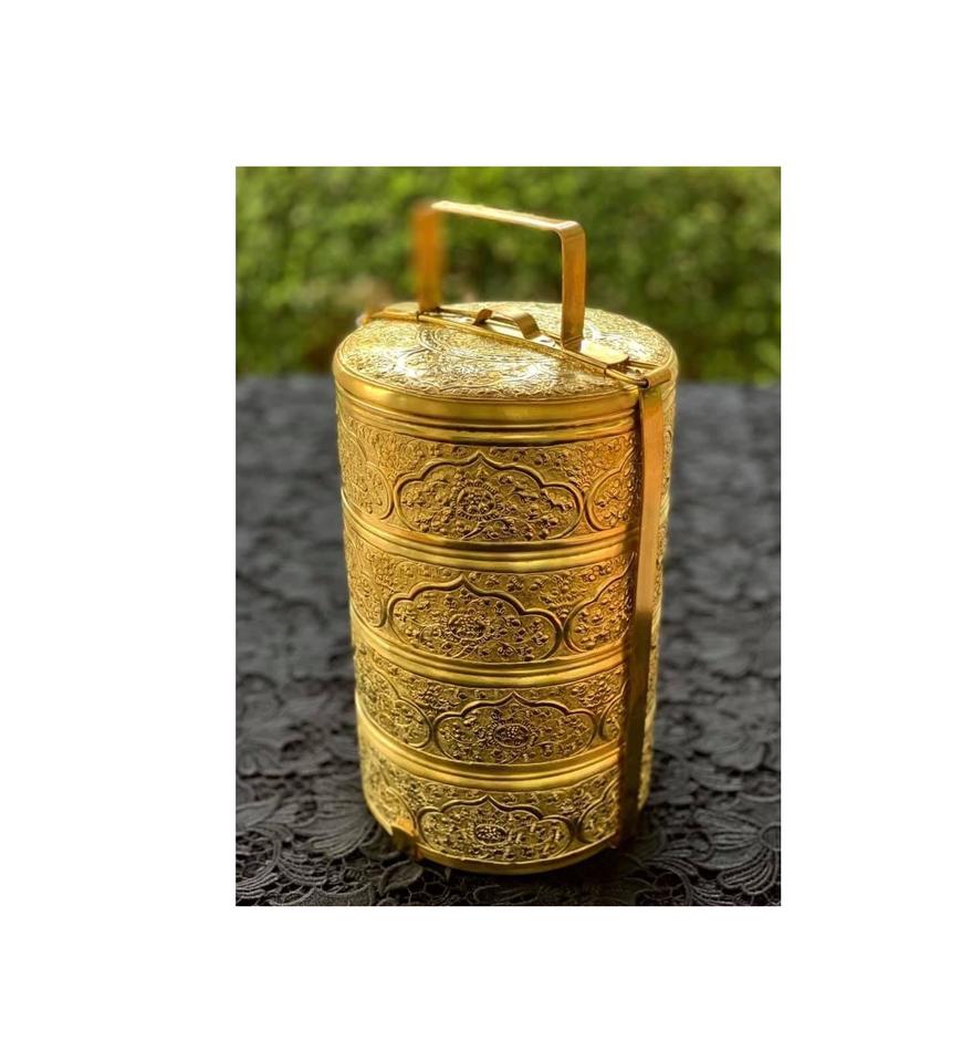 กล่องทิฟฟินทองเหลืองโบราณออกแบบมาเพื่อรักษาอาหารกลางวันให้คงความหอมของรสชาติดั้งเดิมและสารอาหารที่ดีต่อสุขภาพ