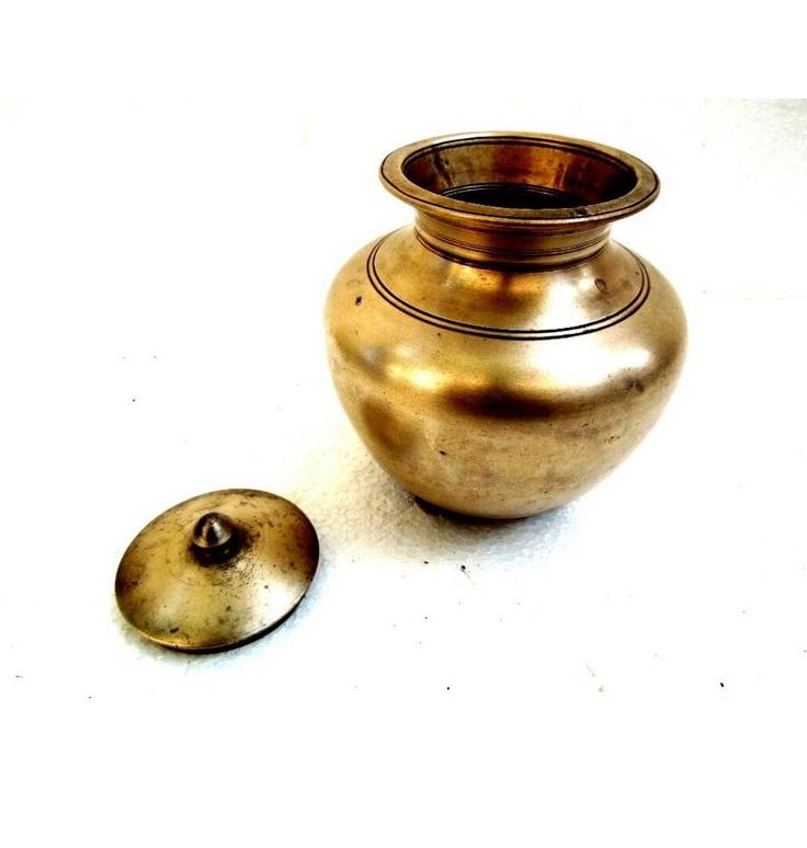 หม้อน้ำทองแดง lota สไตล์โบราณที่มีการออกแบบสลักใช้สำหรับพิธีกรรมทางจิตวิญญาณและการจัดเก็บน้ำ