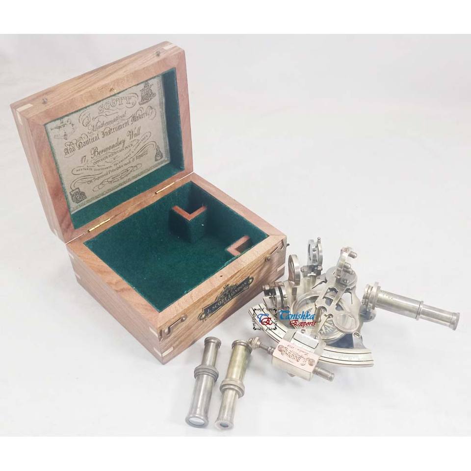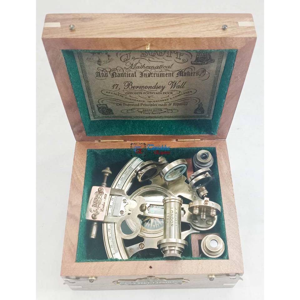 Maritime working Sextant navigational j.scott ลอนดอน1753ทองเหลืองโบราณทำด้วยมือกล่องไม้ตกแต่งบ้านสำนักงานจำนวนมาก