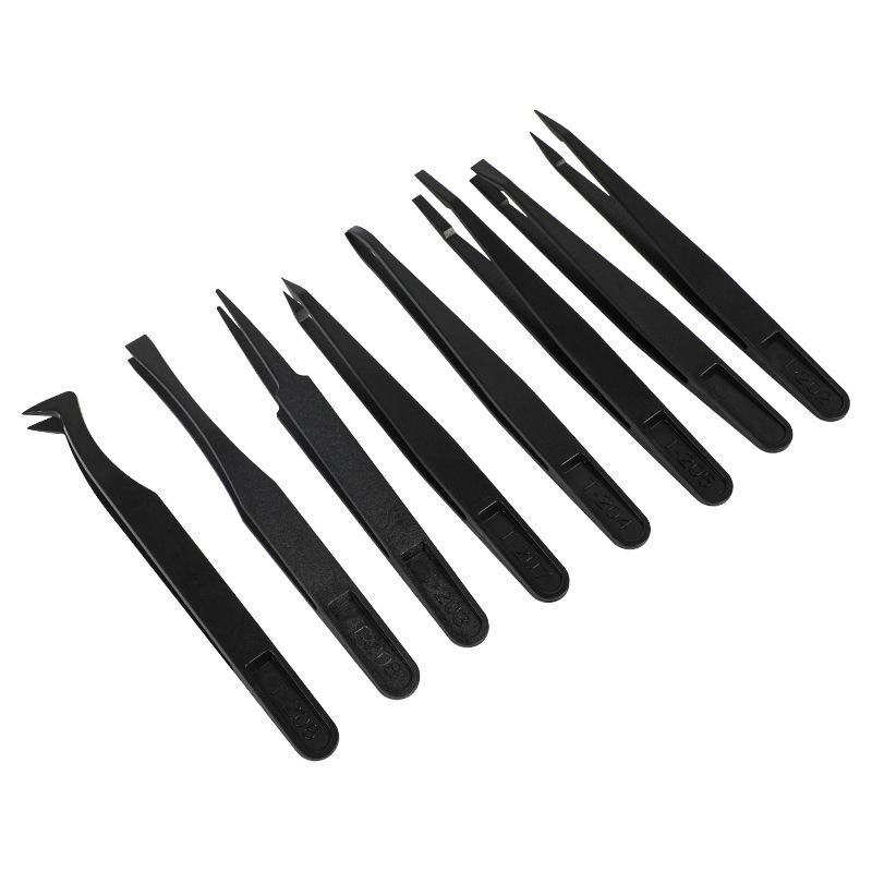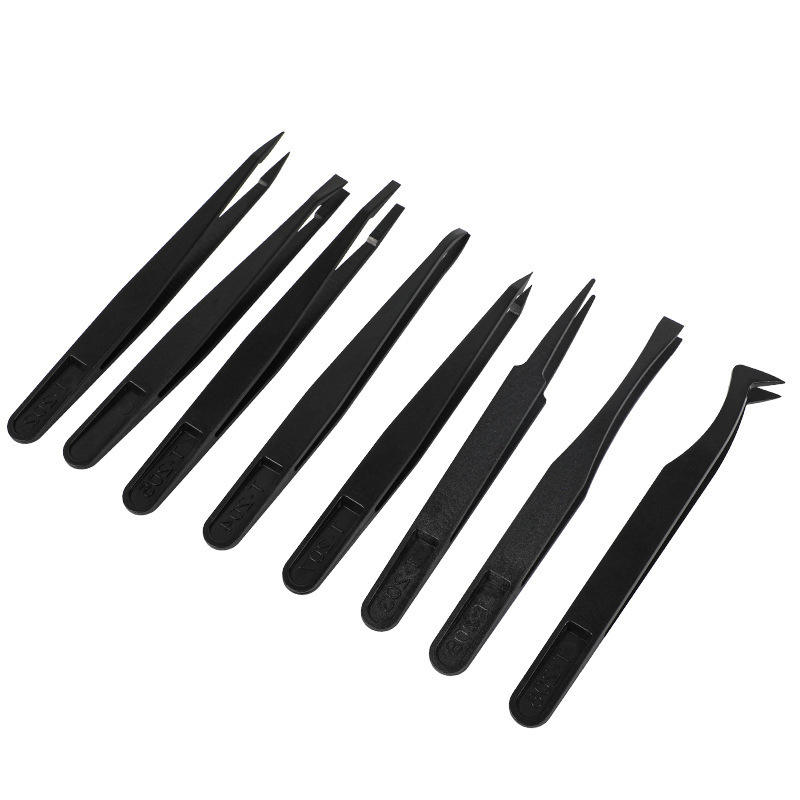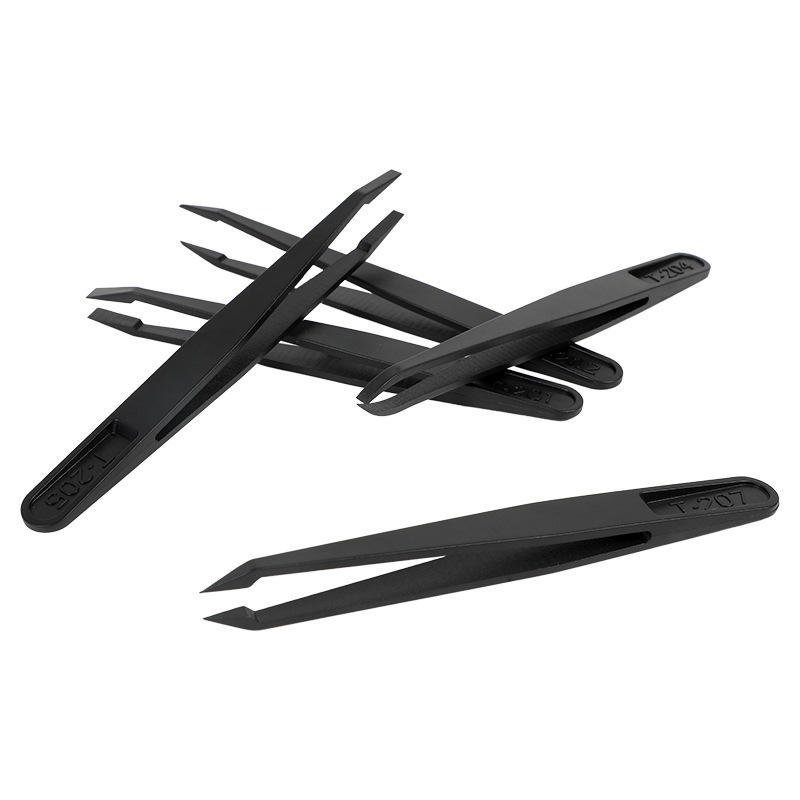 แหนบคาร์บอนไฟเบอร์สังเคราะห์แบบแข็งป้องกันไฟฟ้าสถิตย์ หัวกลม ปากกว้าง หัวแบน เครื่องมือซ่อมแซม