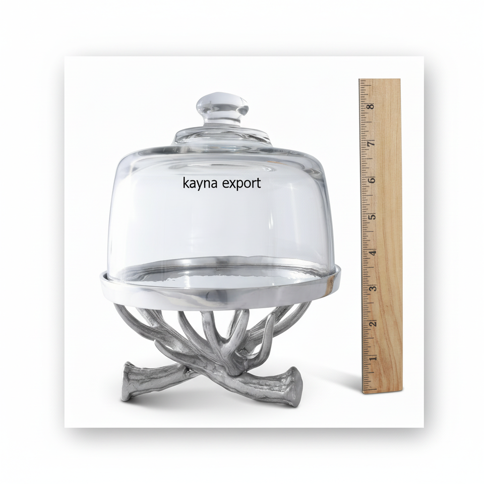 ที่วางเค้กสไตล์เขากวางที่ตกแต่งด้วยโลหะพร้อมฝาแก้ว