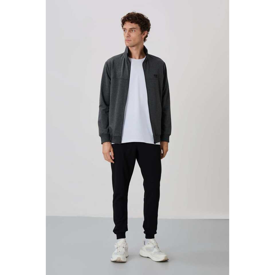 ชุดวอร์มผู้ชาย Anton สีดำเมลันจ์ กางเกงจ็อกเกอร์และเสื้อแจ็คเก็ตแบบลำลอง ระบายอากาศได้ดี ขนาดผู้ใหญ่