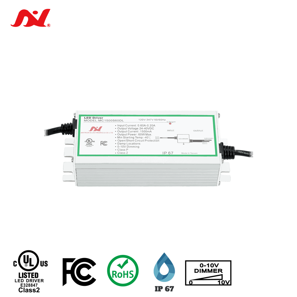 ไดรเวอร์ LED Antron Slim 12V 60W กระแสคงที่ 3-in-1 ปรับหรี่แสงได้ ช่องสัญญาณเดียว ระดับ Class 2 /cUL Certified รับประกัน 5 ปี แบบสั้น