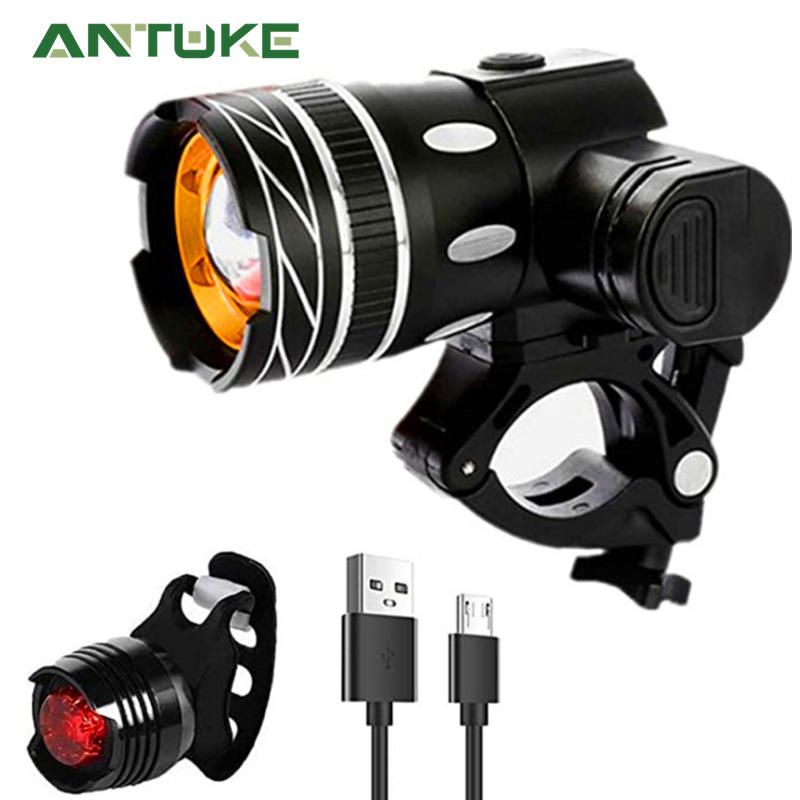 แอนทูคไฟหน้าจักรยาน T6 อลูมิเนียมอัลลอยด์ LED แบบชาร์จไฟได้พร้อม 4 โหมด IPX4 กันน้ำสำหรับการขี่จักรยาน