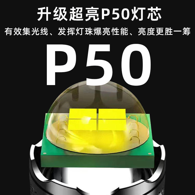ไฟฉาย P50 [ซูมและชาร์จโทรศัพท์] จอแสดงผลดิจิตอล
