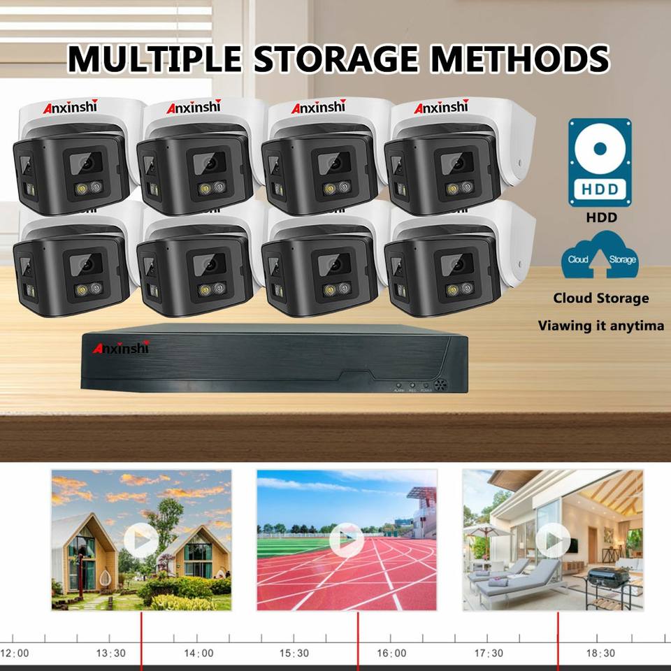Anxinshi ชุดกล้องไอพี180 ° มุมกว้าง2เลนส์4MP 8CH พร้อมตัวกล้องมนุษย์และระบบกล้องวงจรปิดตรวจจับยานพาหนะ