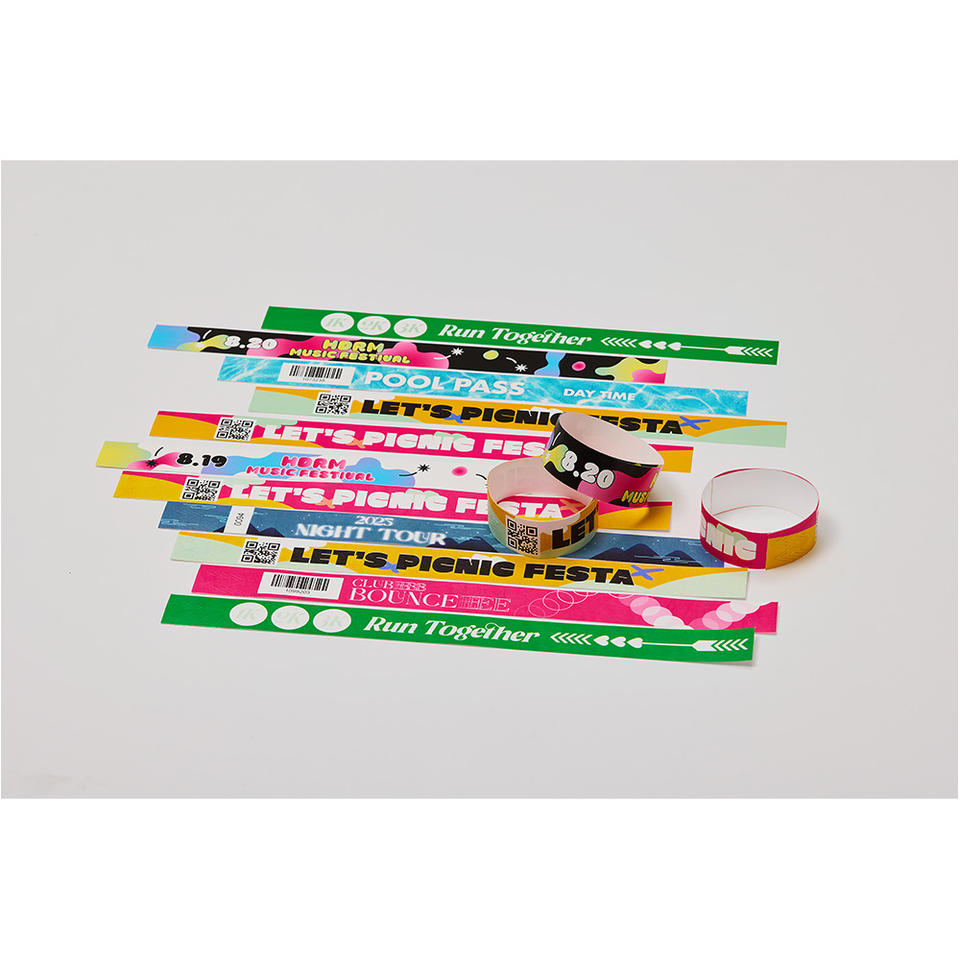 สายรัดข้อมือ YUPO สีสันสดใส แบบแยกชิ้น ขนาด 25 มม. (1 นิ้ว) สายรัดข้อมือแบบมีข้อมูลแปรผันสำหรับการควบคุมการเข้าออก