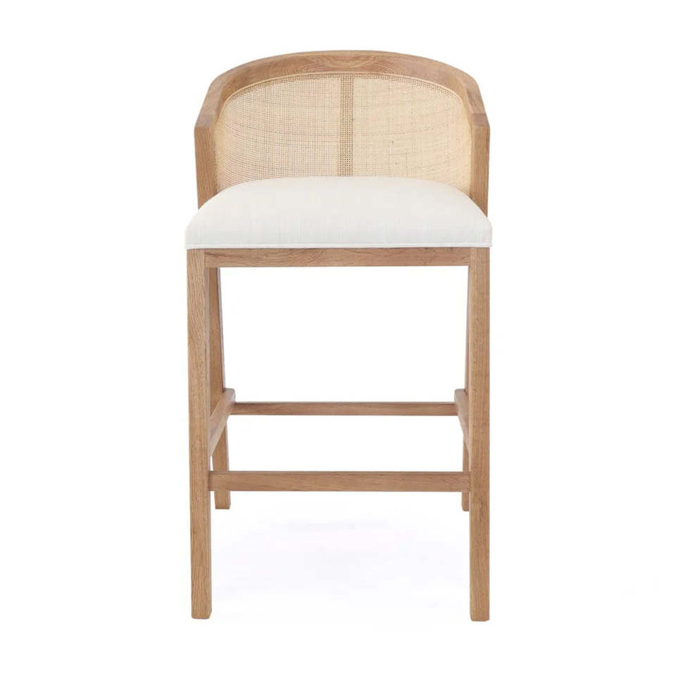 เก้าอี้บาร์ปรับระดับได้ Anya ทำจากไม้สักแท้ พร้อมเบาะหวายสานและเคลือบผิวธรรมชาติ สำหรับใช้ในโรงแรมและภายในอาคาร