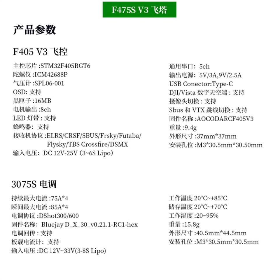 Aocoda-แผงควบคุมการบิน V3 F475S RC สำหรับโดรนแข่งขัน FPV มินิเบาพิเศษ