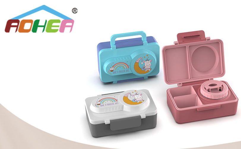 กล่องเบนโตะ3ช่องดีไซน์ใหม่จาก aoha โถใส่อาหารปรับแต่งโลโก้ได้