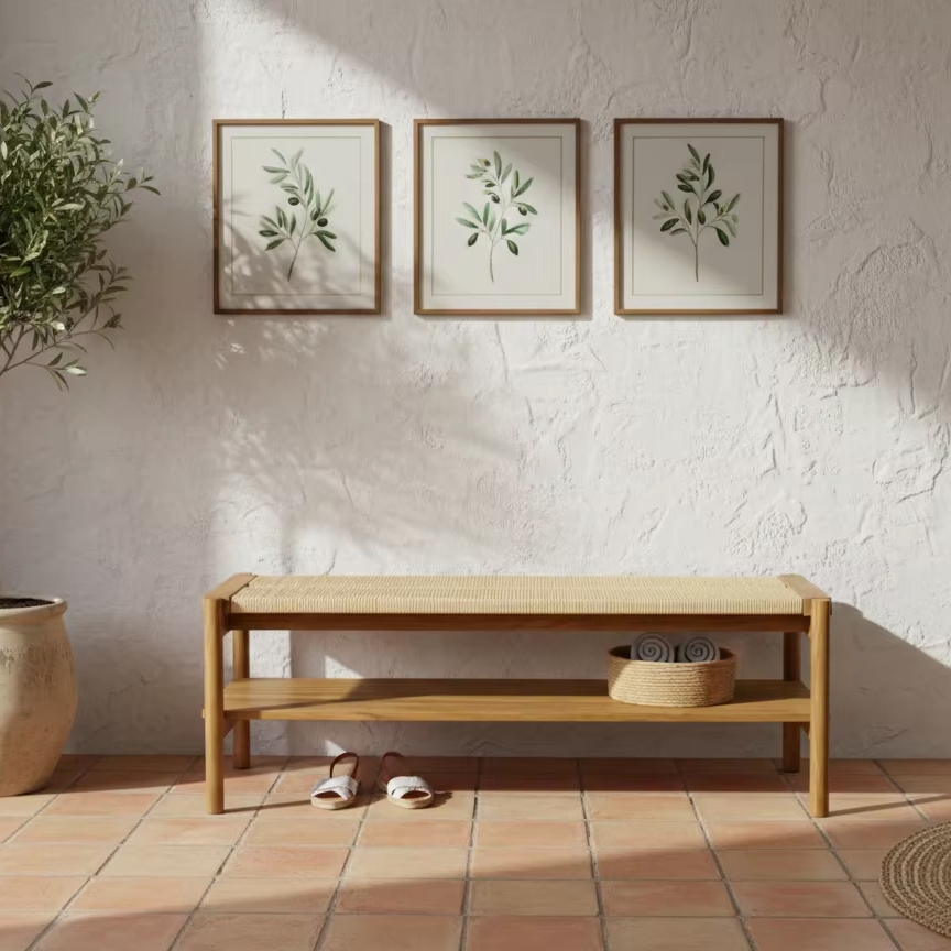 ม้านั่งไม้เนื้อแข็งทรงสี่เหลี่ยมผืนผ้า ดีไซน์ญี่ปุ่นทันสมัย แข็งแรง ทนทาน ทำความสะอาดง่าย เหมาะสำหรับห้องนั่งเล่น ห้องนอน และใช้งานกลางแจ้ง