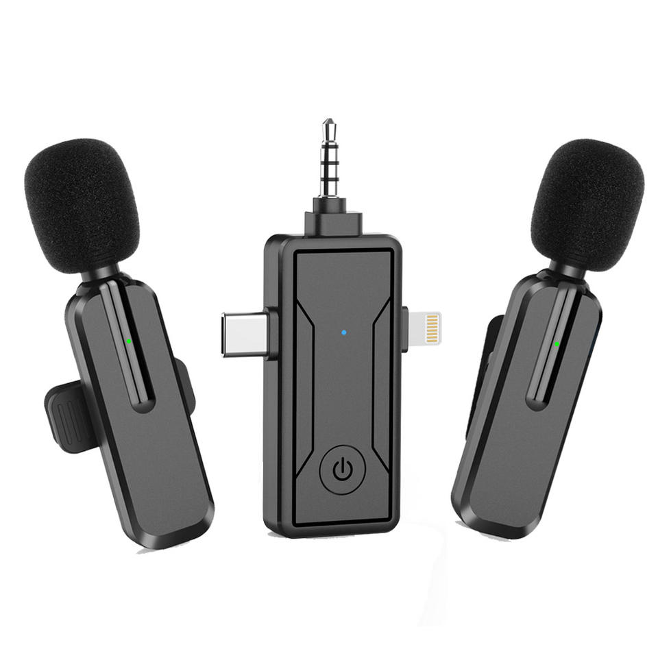 Aomago ไมโครโฟน lavalier 3-in-1อเนกประสงค์ WM690ไมโครโฟนปกเสื้อไร้สายพร้อมระบบลดเสียงรบกวนขั้นสูงสำหรับการสัมภาษณ์และวิดีโอ