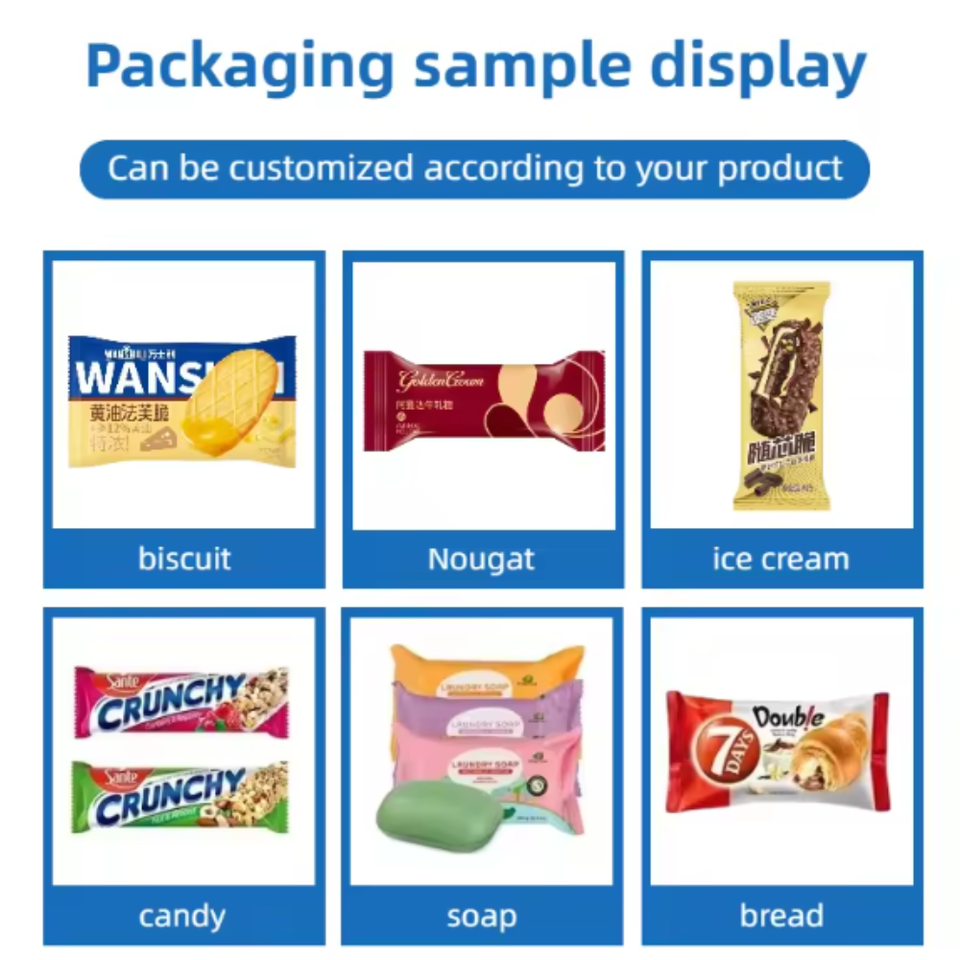 เครื่องบรรจุภัณฑ์แบบหมอนอัตโนมัติเต็มรูปแบบ สำหรับขนมขบเคี้ยว ลูกอม ขนมปัง ผลไม้ และบรรจุภัณฑ์แบบหมอน