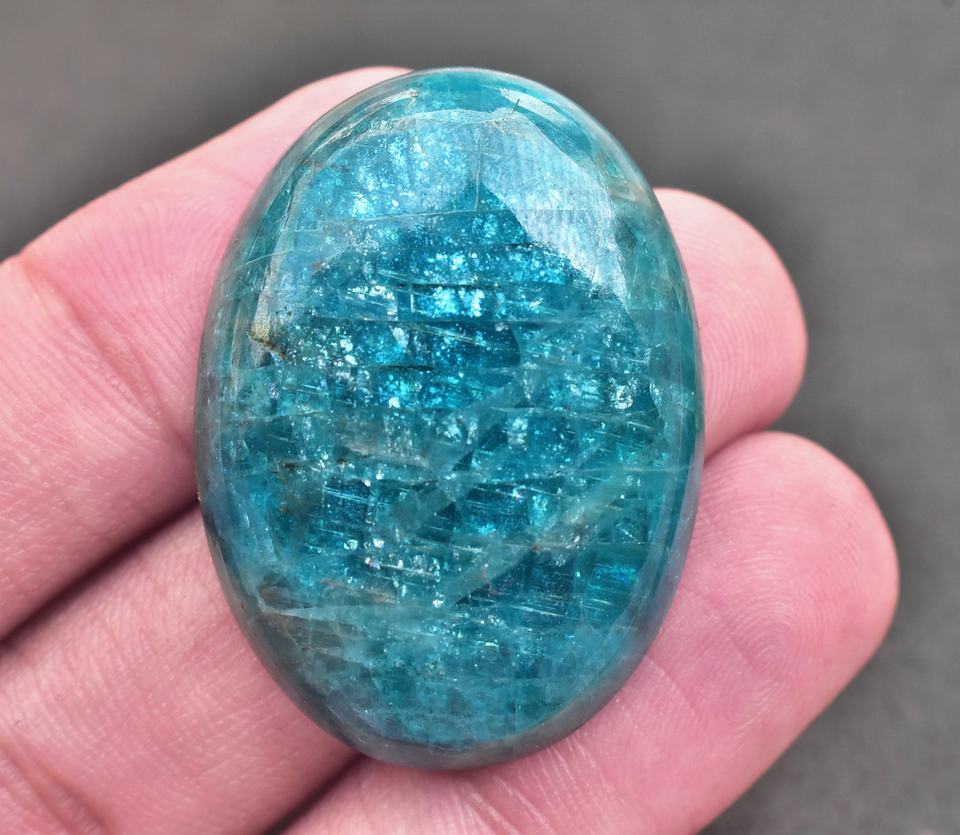 อะพาไทต์ คาโบชอง เกรด A+ คุณภาพสูง สีฟ้าสดใส พลอยหลวมคุณภาพสูง คริสตัลขัดเงาทำมือ แบรนด์ S.F. GEMS ขนาด 20-50 มม. สำหรับตกแต่งเล็บ