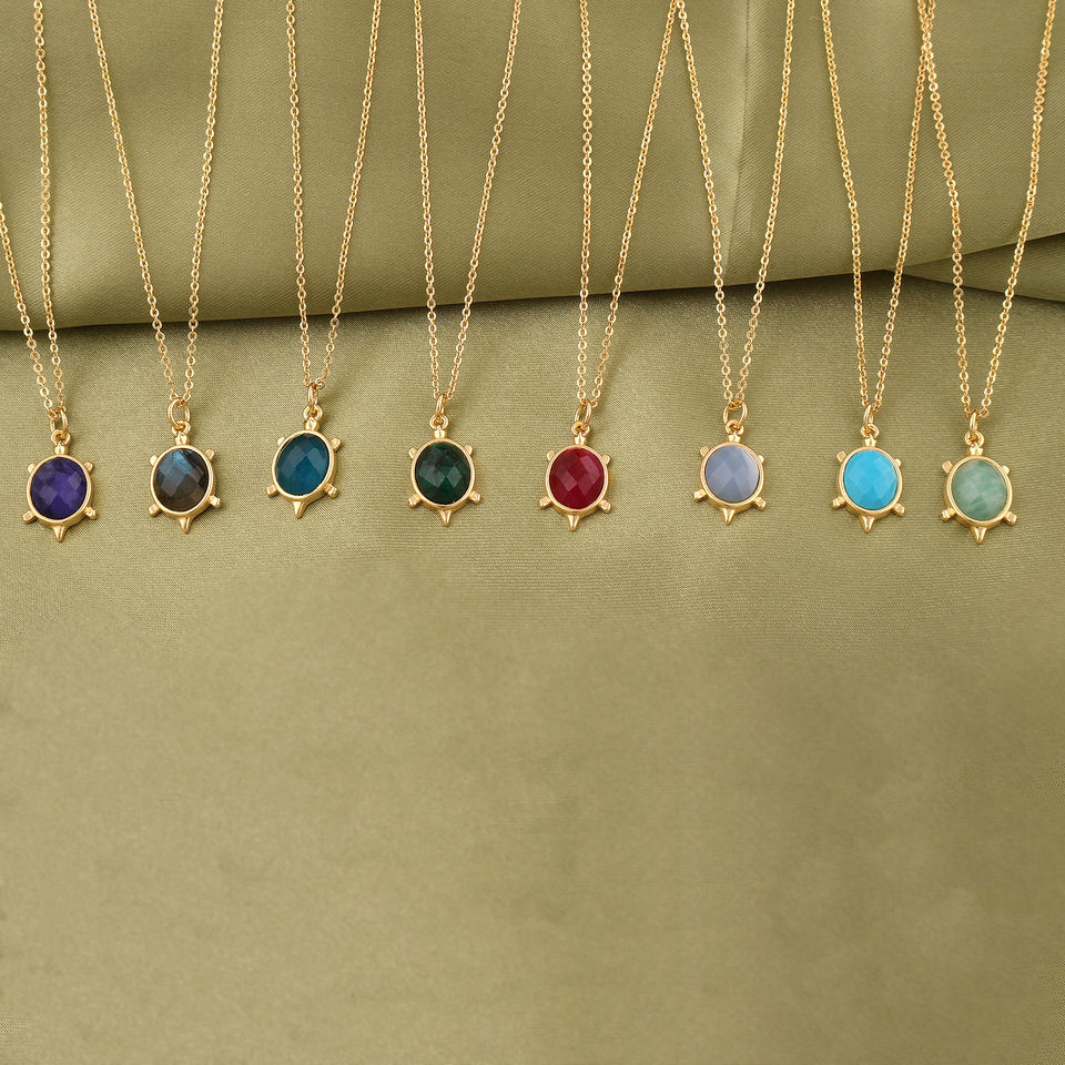 จี้หินอะพาไทต์ทรงรีแบบตัดลายตารางเคลือบทอง 18k รูปเต่า เสริมโชคลาภ สร้อยคอแฟชั่น