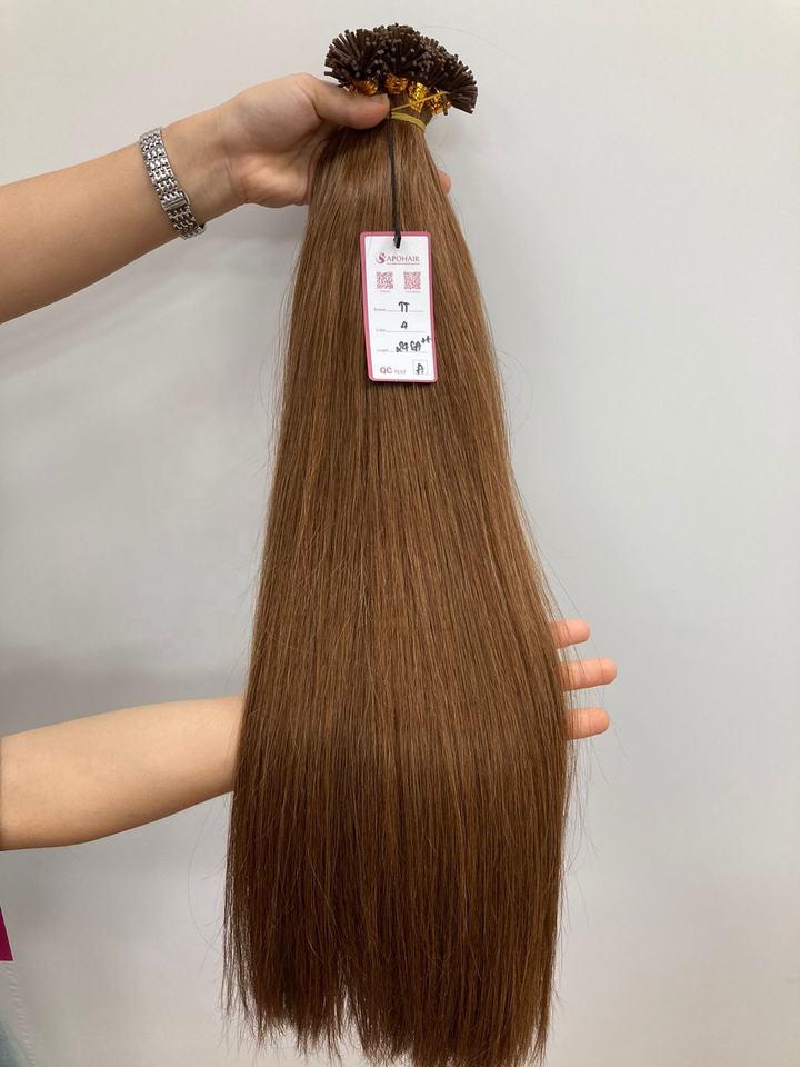 Apohair 100% ต่อผมมนุษย์ผมแท้แบบเวียดนามมีหนังกำพร้าสีน้ำตาลอ่อน