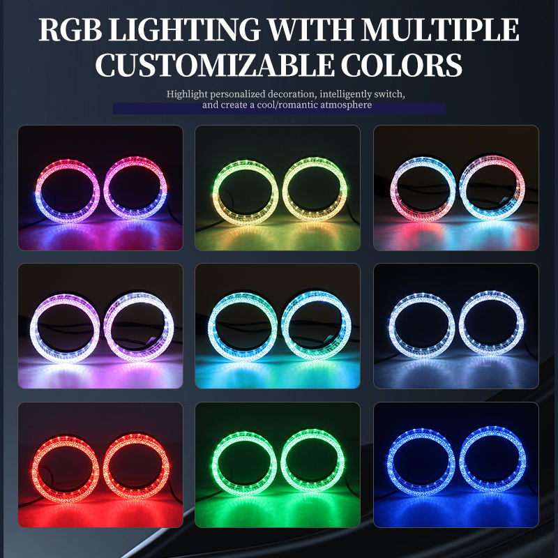 ชุดควบคุมแอพ RGB ขนาด 2.5 นิ้ว 3 นิ้ว โปรเจคเตอร์เลนส์คริสตัล 5 มิติ ไฟ DRL พร้อมฝาครอบ Angel Eyes LED