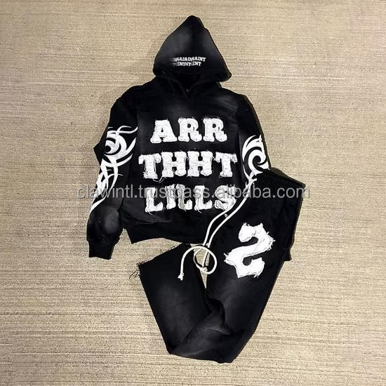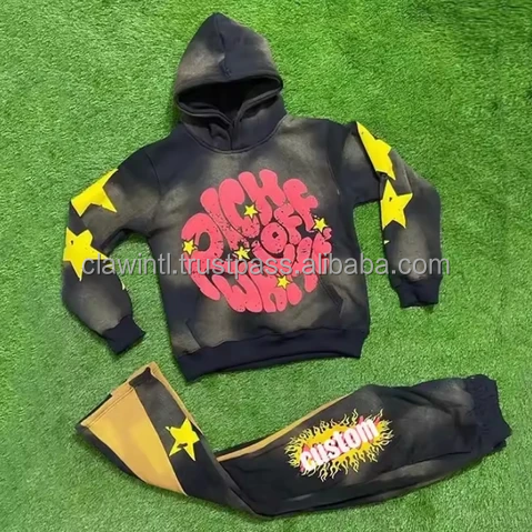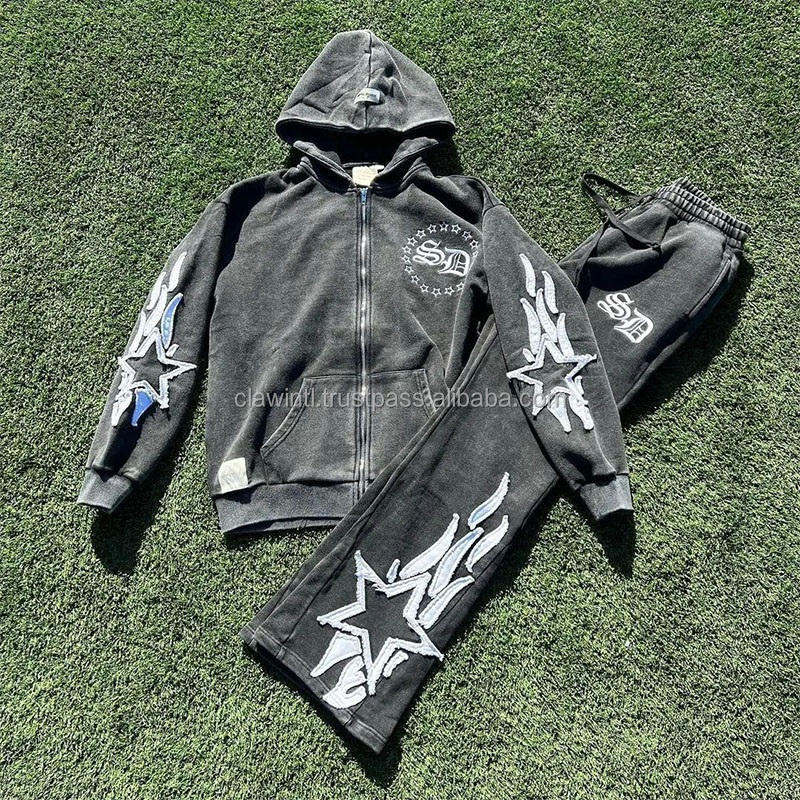 Apparel & Clothing Manufacturers Custom Flared Acid Wash Sweat Pants Sweat Suits Vintage Streetwear Sun Faded Tracksuits for Men