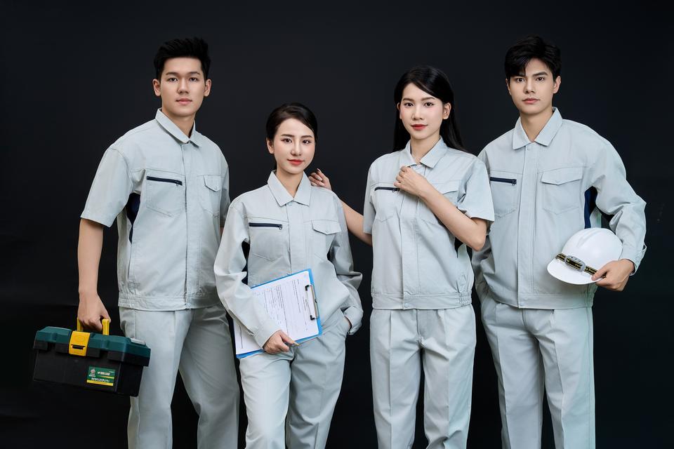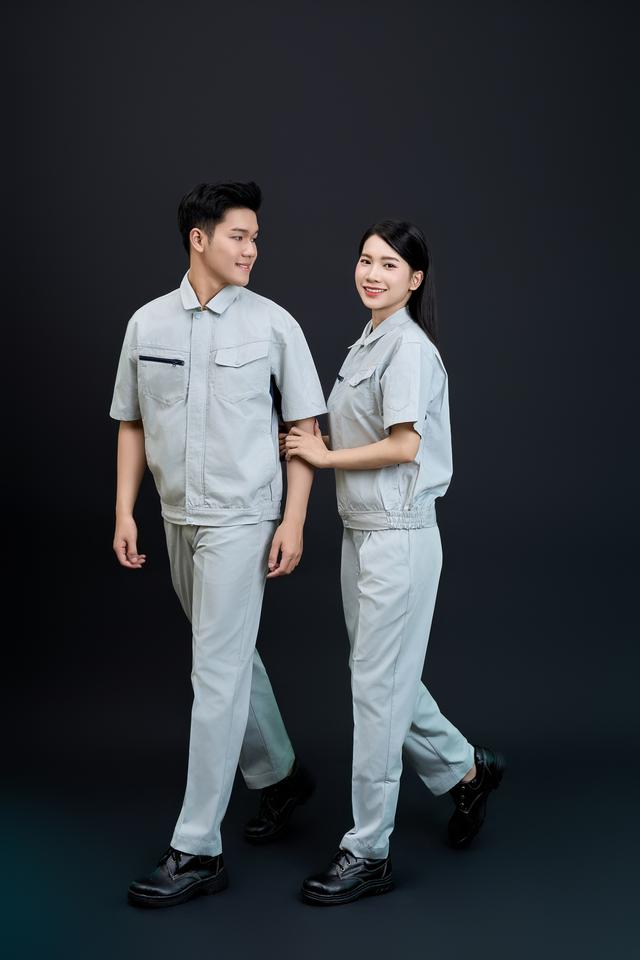 ชุดเครื่องแต่งกายเพื่อความปลอดภัยของผู้หญิง Fmf ชุดทำงานแขนสั้นสีเทาและสีกรมท่าจากเวียดนาม