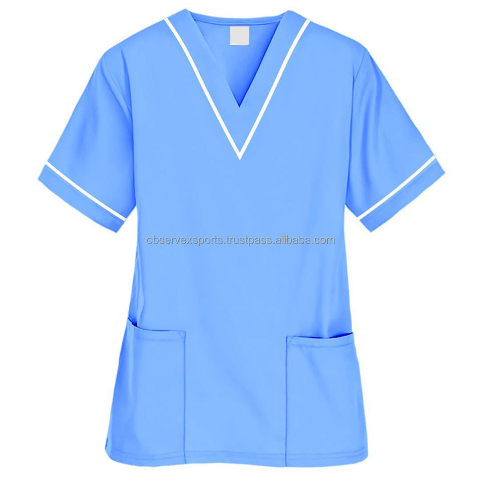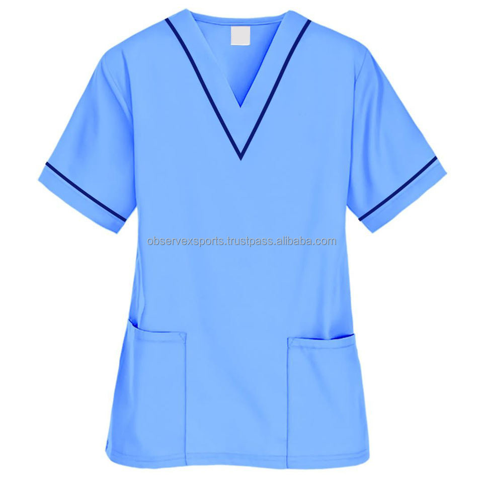 เสื้อสครับสำหรับผู้หญิงเสื้อผ่าตัดคอวี3กระเป๋าเสื้อเครื่องแบบทางการแพทย์