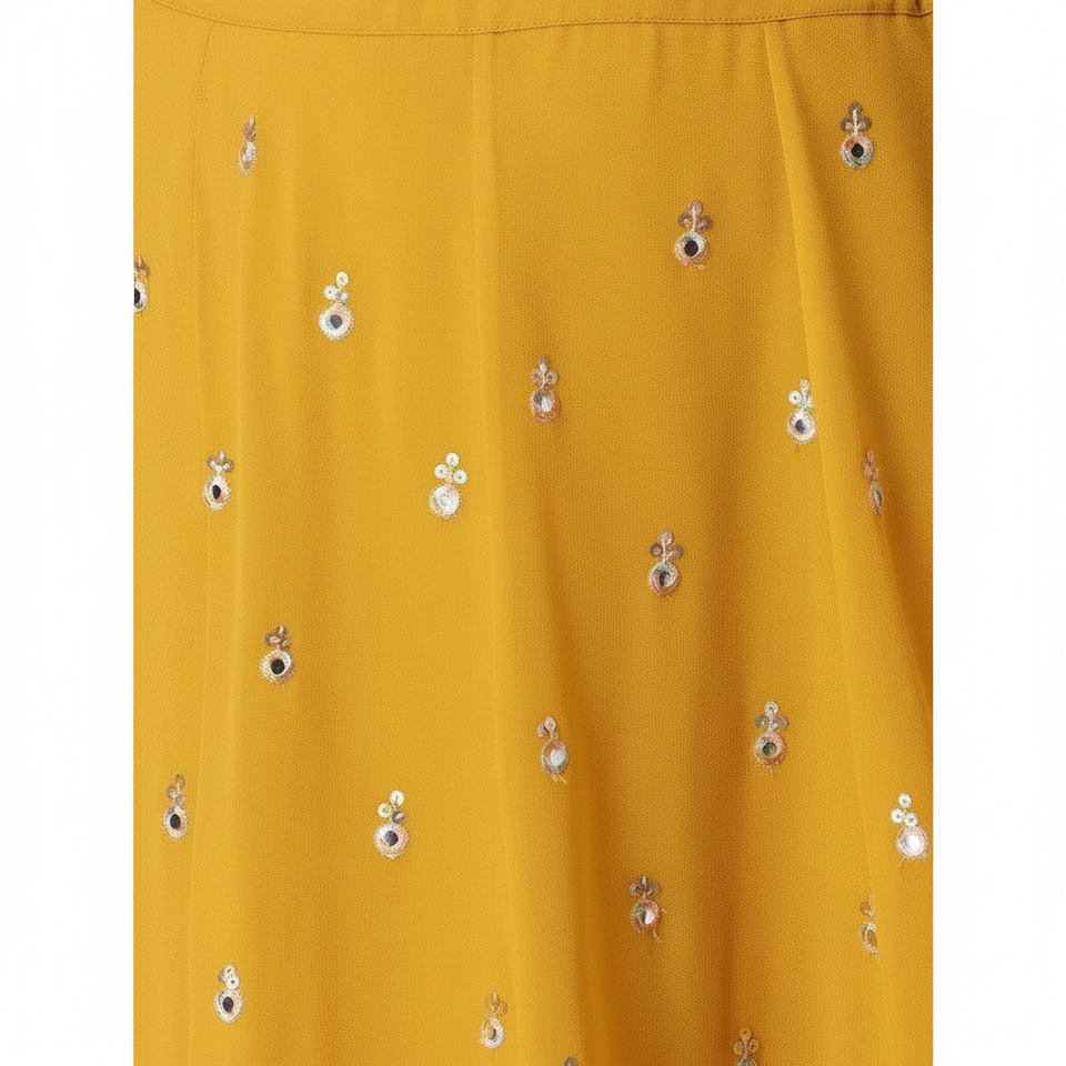 ชุดผ้าจอร์เจียประดับเลื่อมสีเหลืองดึงดูดใจ