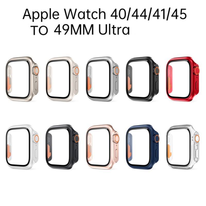 เคสรูปลักษณ์การเปลี่ยนอัปเกรดเป็นอัลตร้า49มม. + กระจกนิรภัยสำหรับ Apple Watch Series 8 7 45มม. 41มม. 4 5 6 40มม. 44มม.