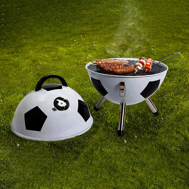เตาบาร์บีคิวถ่านรูปทรงฟุตบอล Apple Grill แบบพกพา ทำจากเหล็ก สำหรับย่างกลางแจ้งและในร่ม พร้อมเหล็กเสียบย่าง ขนาดเล็ก รุ่น BQ17