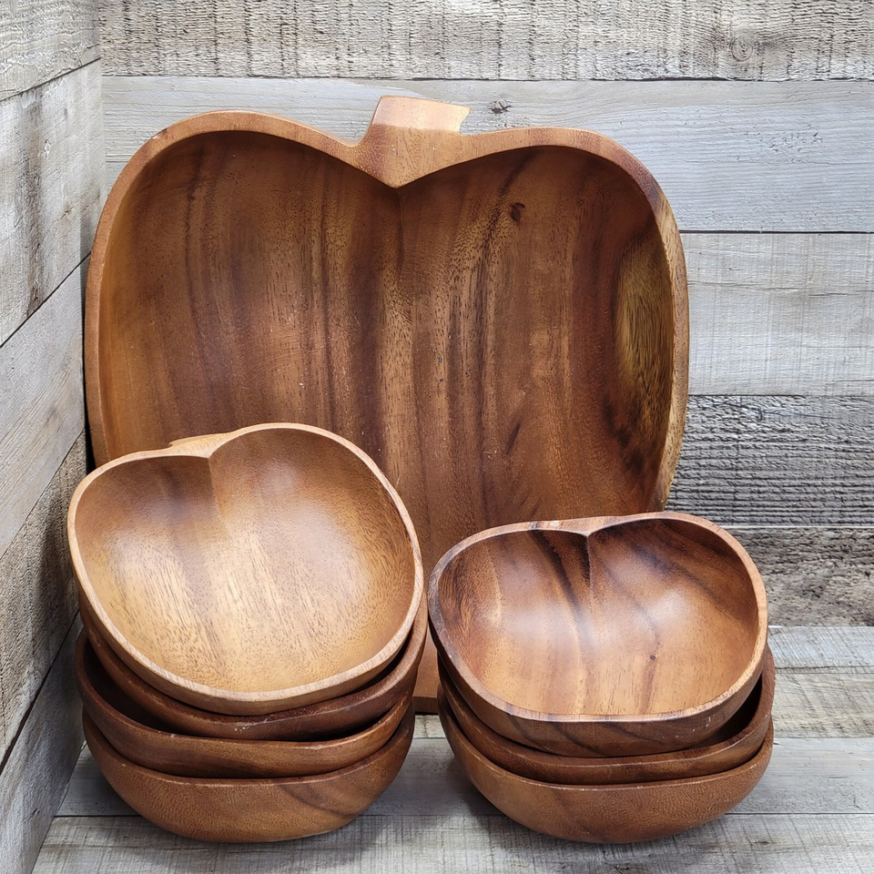 ชามไม้รูปแอปเปิ้ลชามไม้สำหรับตกแต่งดีไซน์ทันสมัยสำหรับบ้านไร่