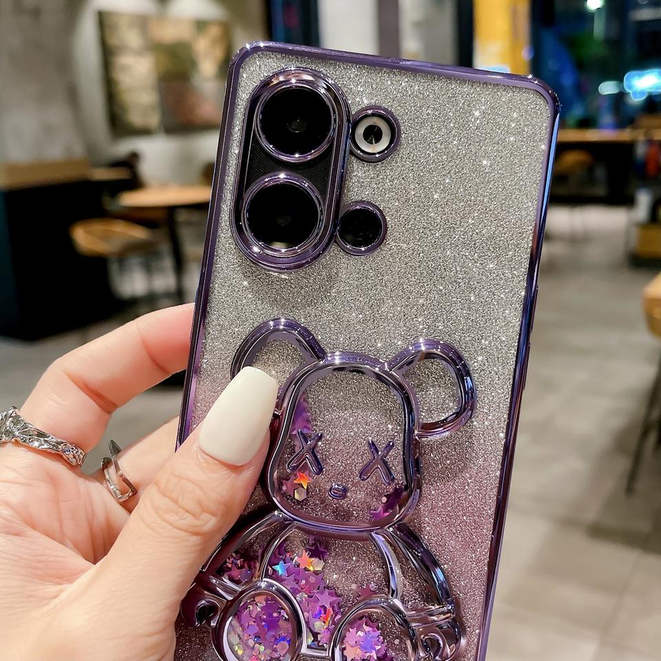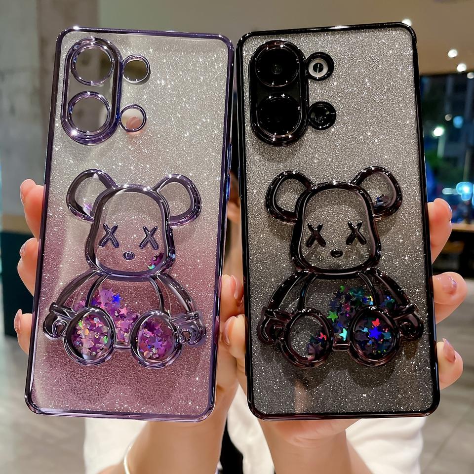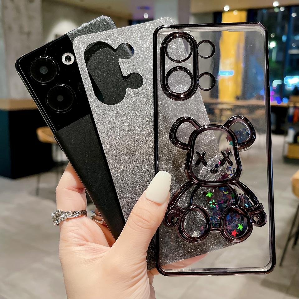 ใช้ได้กับ RENO13 OPPO ที่ชุบด้วยไฟฟ้าเคสโทรศัพท์ลายหมีรุนแรง RENO12แวววาวไล่ระดับสีเคสนิ่ม R11