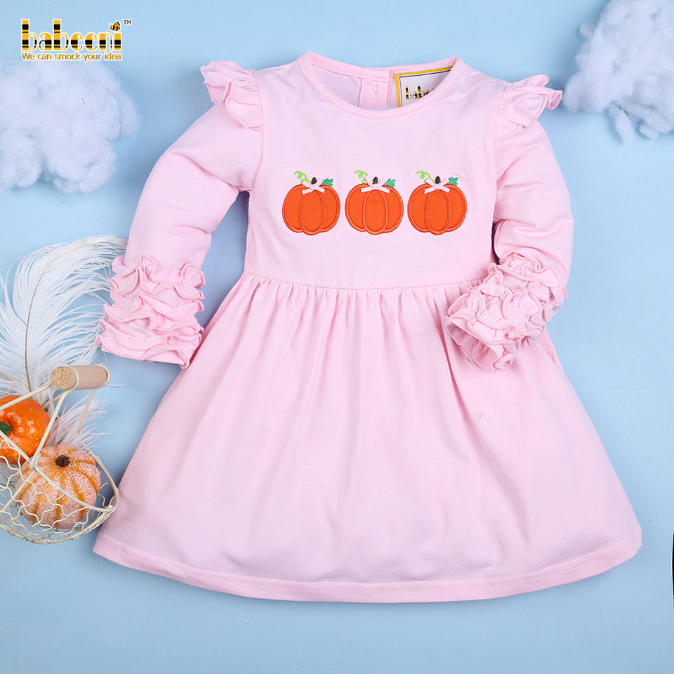 ชุดเดรสฟักทองสำหรับเด็ก3D ยาวผ้าคอตตอนวันขอบคุณพระเจ้าผ้าปะติดมือสำหรับเด็ก BB2133ฤดูใบไม้ผลิ100% OEKO-TEX