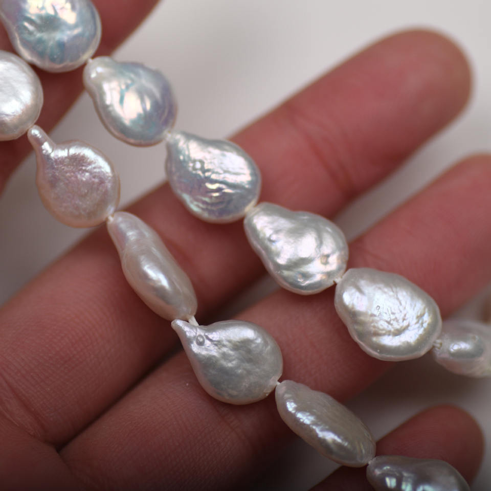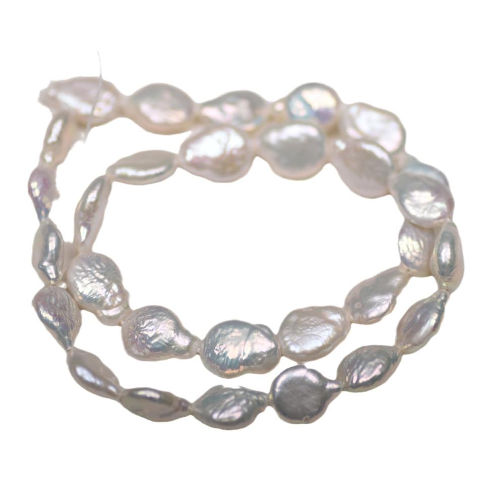 ไข่มุกน้ำจืดแท้สีขาวทรงบาร็อค ขนาดประมาณ 10-11 มม. ยี่ห้อเวนชิ ผลิตในจีน แสงเงาสวยงาม รูปทรงหยดน้ำ