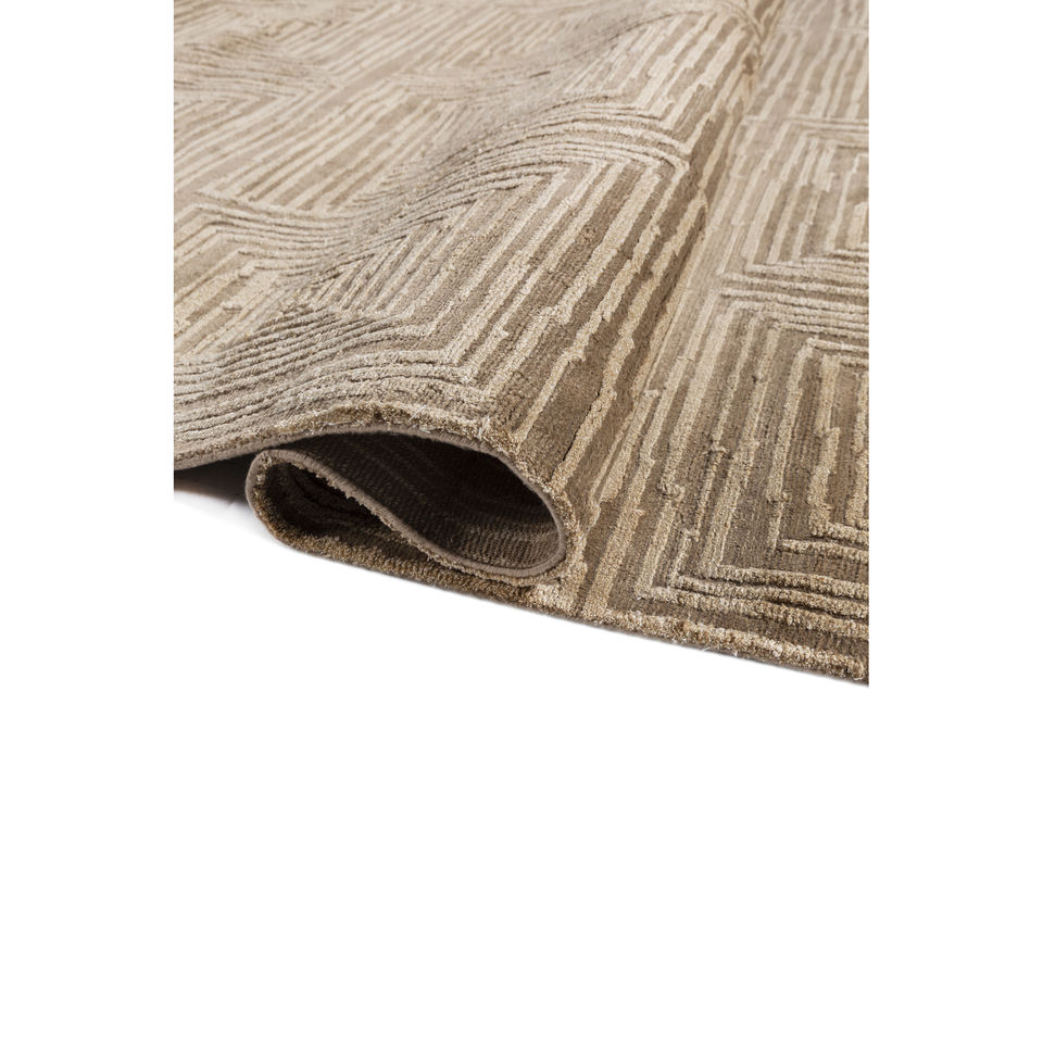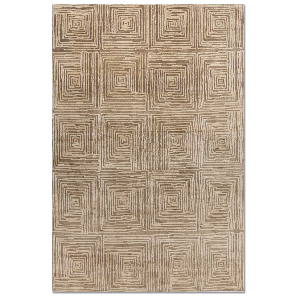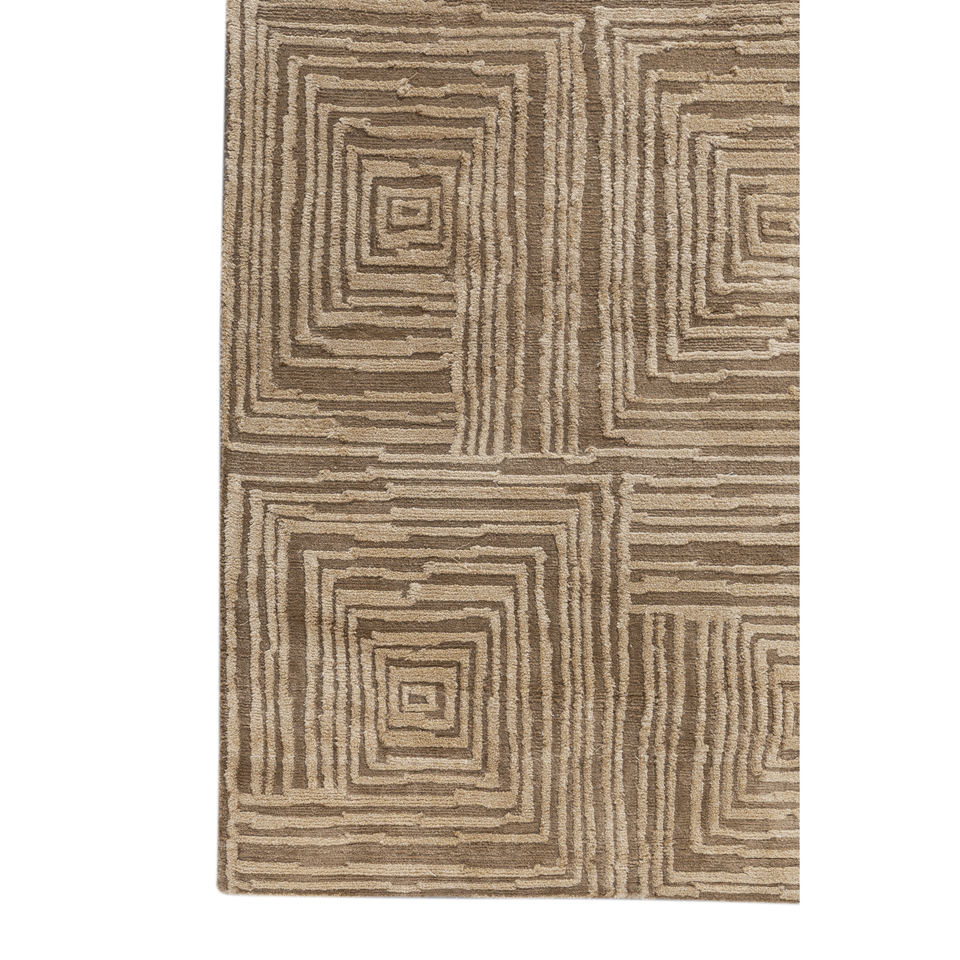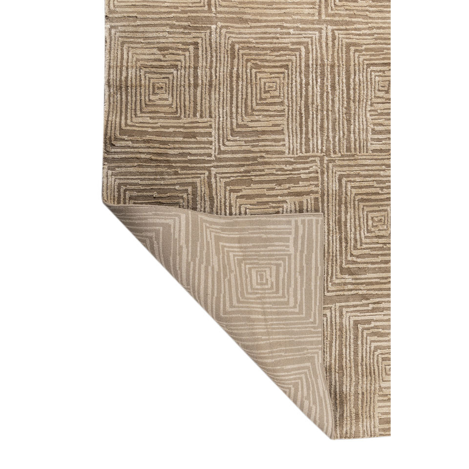 พรมอะคริลิคถักมือสีเบจและสีน้ำตาลลายเรขาคณิตสำหรับห้องนั่งเล่น พรมปูพื้นรูปทรงสี่เหลี่ยมผืนผ้าสำหรับห้องโถง-รุ่น Aiar-3013