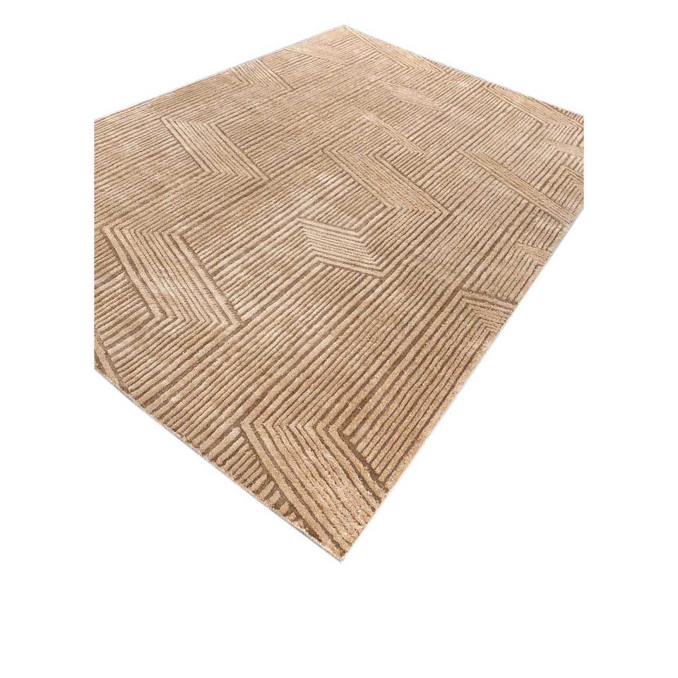 พรมอะคริลิคถักมือลายเรขาคณิตสีเบจน้ำตาลคลาสสิก รุ่น Aprezo สำหรับบ้าน สำหรับทางเดิน รูปทรงสี่เหลี่ยมผืนผ้า รุ่น AIAR-3019