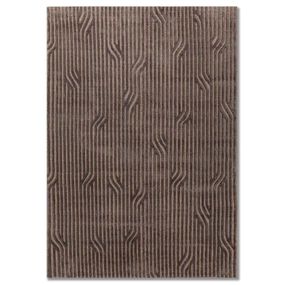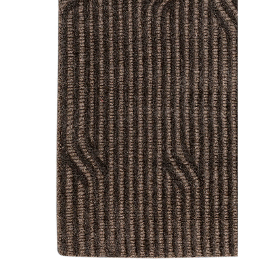 พรมอะคริลิคถักมือ Aprezo สีเบจ-น้ำตาล ลายเส้นนามธรรม รูปทรงสี่เหลี่ยมผืนผ้า สำหรับห้องโถง ห้องนั่งเล่น รุ่น Aiar-3016