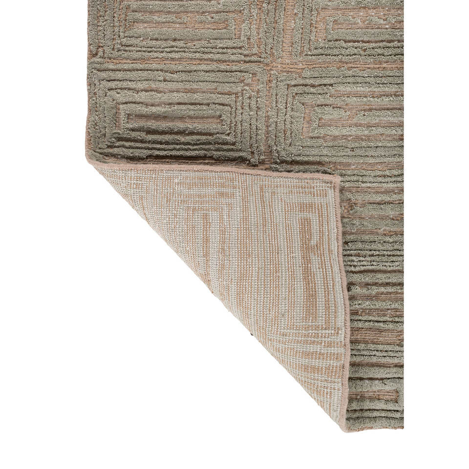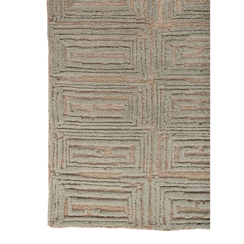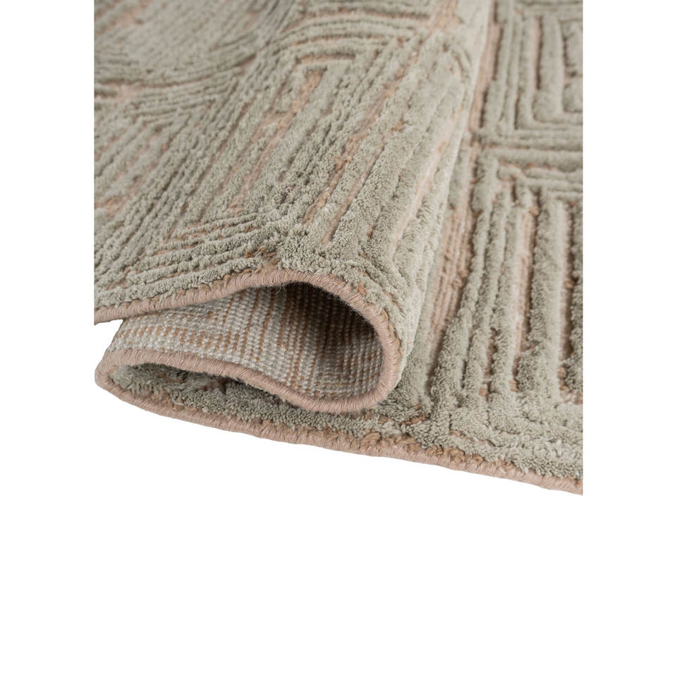 พรมอะคริลิคสีเบจและสีน้ำตาลถักมือ Aprezo ลายเรขาคณิตและลวดลายนามธรรมสไตล์โบโฮ สำหรับบ้านและทางเดิน-Akar-1045 สำหรับห้องวัยรุ่น