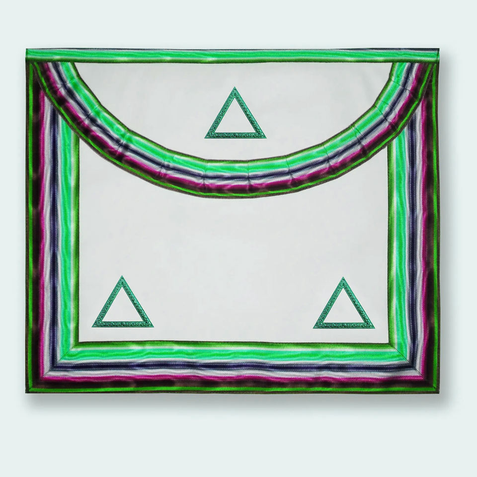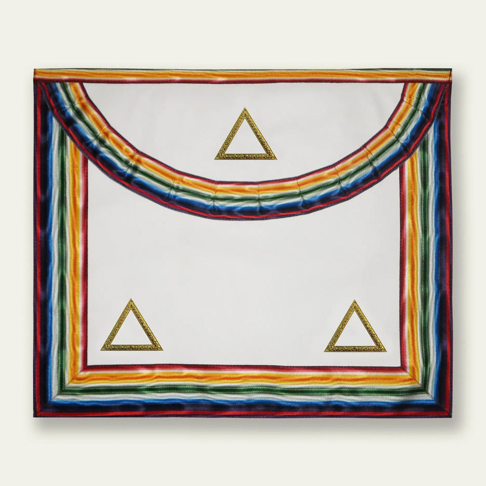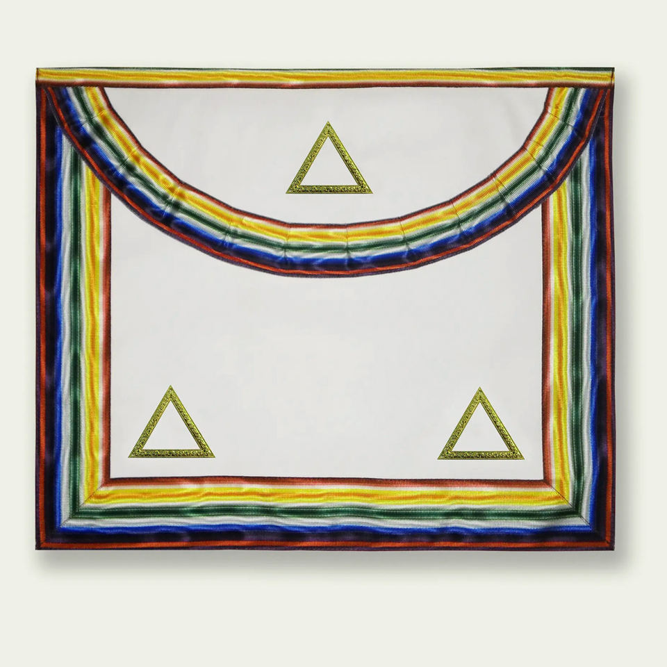 ผ้ากันเปื้อนปักลายดวงตาที่มองเห็นทุกสิ่ง พร้อมลายสี่เหลี่ยมและเข็มทิศดิ้นทอง ผ้ากันเปื้อนลายพิธีกรรมสกอตแลนด์ ผ้ากันเปื้อนลายอินทรีสองหัว