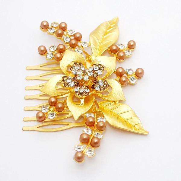 Apurva Floral Design Gold Plated Pearl Hair Brooch 1502006 Model Elegant Pearl Accessory for Hair