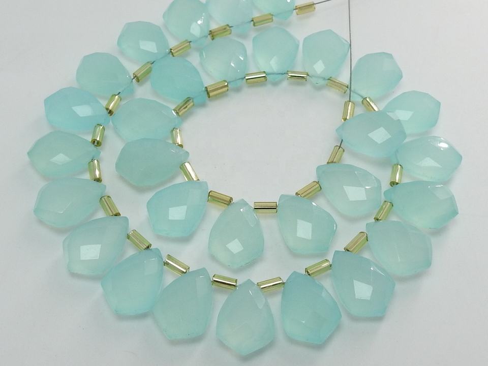 พลอยคาลเซโดนีสีฟ้าอควา ทรงรูปว่าวเจียระไนแบบบริโอเล็ต หินหลวมสำหรับทำต่างหูทรงหยดน้ำ งานแฮนด์เมด วัสดุอัญมณีสำหรับทำเครื่องประดับ