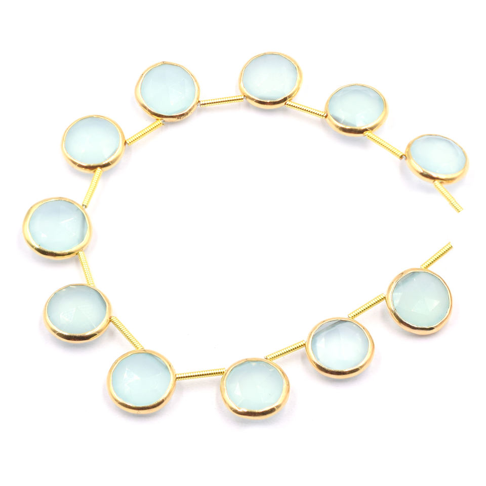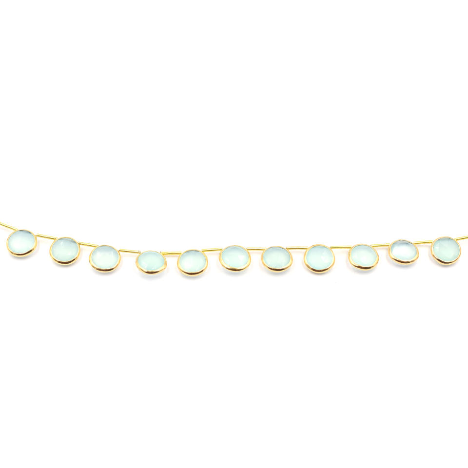 Aqua Chalcedony หน้ากากทองคำทรงกลม11-13มม.,เส้นลูกปัด11เส้นเจาะด้านข้างเคลือบสีเงิน