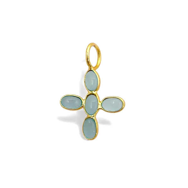 จี้รูปกากบาทประดับอะควาคาลซีโดนีทรงรีขนาด 5x3 มม. ขอบทองชุบ งานแฮนด์เมด ผู้ผลิตเครื่องประดับจากอินเดีย
