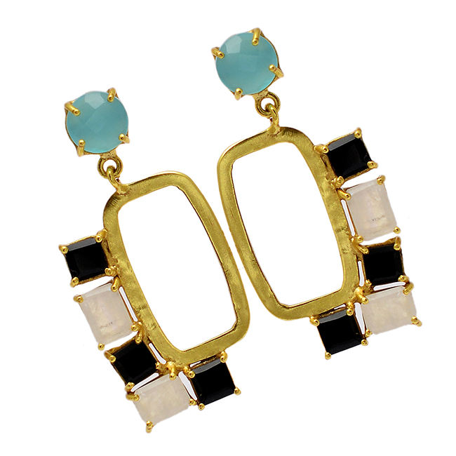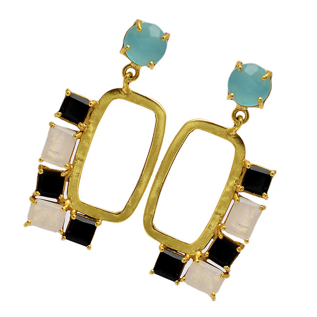 หิน:Aqua Chalcedony, สีดำนิล, สายรุ้งมูนสโตน