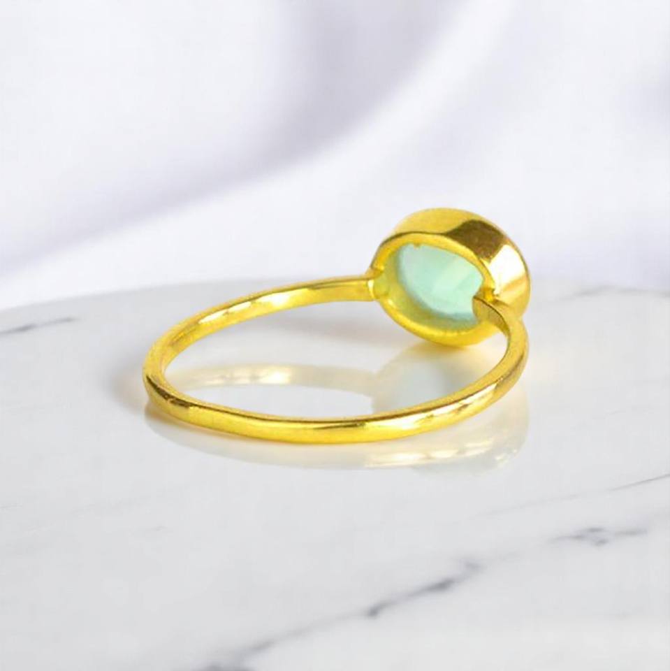 แหวนชุบทอง8x10มม. รูปไข่พลอยคาลซิโดนีทำด้วยมือแหวนเงิน925ธรรมดา