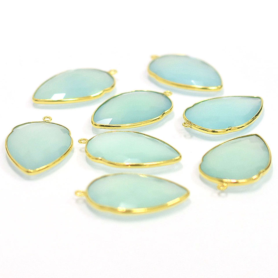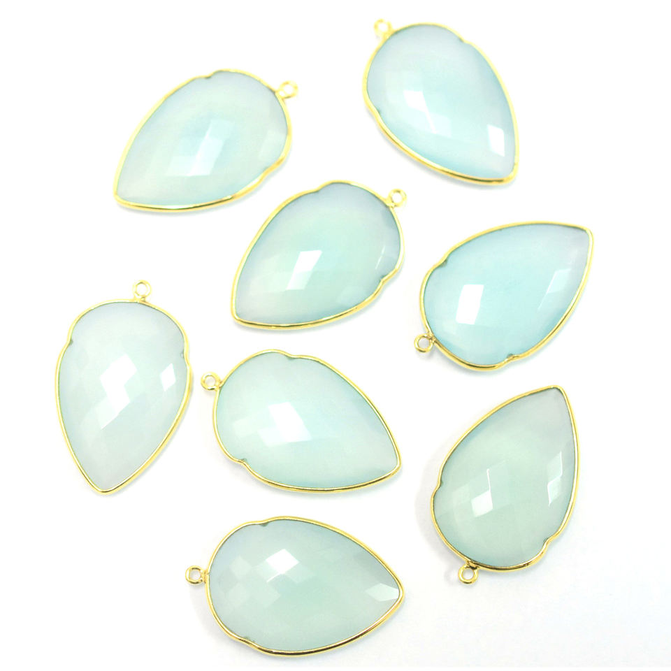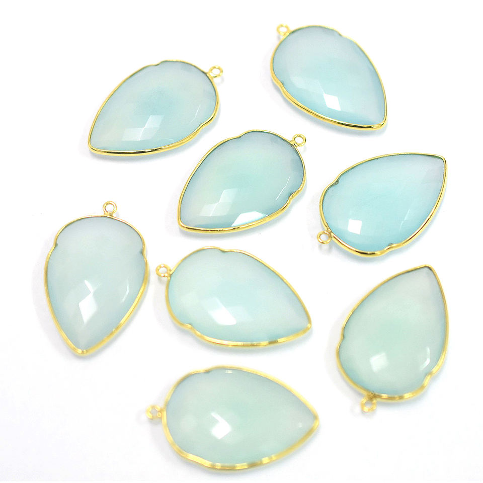 Product Name:Aqua Chalcedony Pear Shape Silver Bezel Gold Plated Pendant